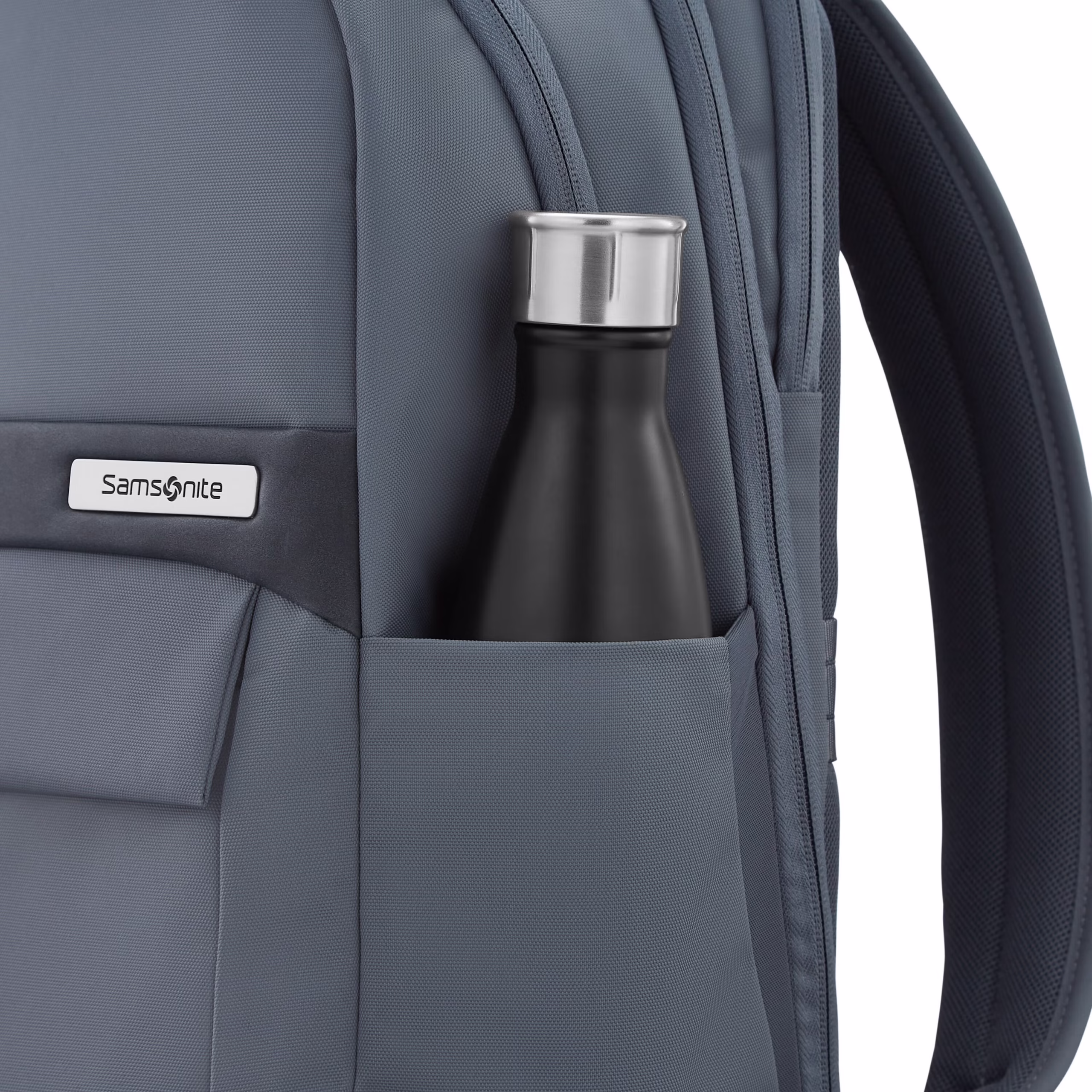 - Bolsillo para botella de agua con expansión elástica