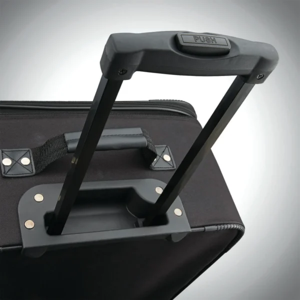 This American Tourister Set is made of Ultra Lightweight 600D shiny polyester construction. Rolls upright so there is no weight on your arm or shoulder, Uprights have smooth rolling in line skate Wheels for effortless mobility. Features Reinforced corners defend against the harshest travel conditions and Multiple interior and exterior Pockets keep you well organized. Push Button locking handle is designed to fit comfortably in your hand. Retractable handle – provides easy maneuverability when extended out from the suitcase and side carry handle allows you to lift the suitcase or wheeled backpack with ease and comfort.