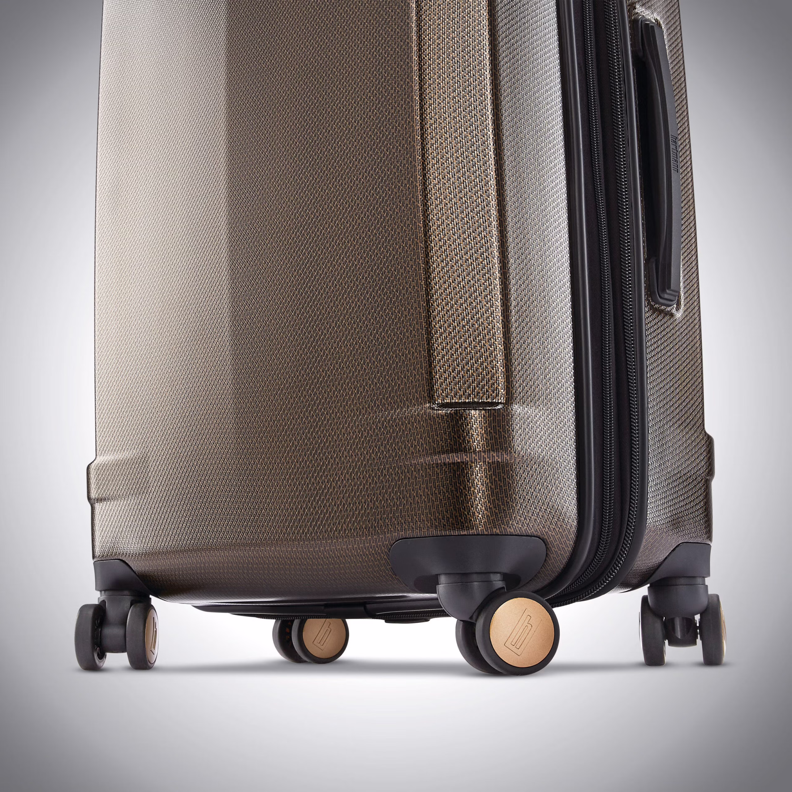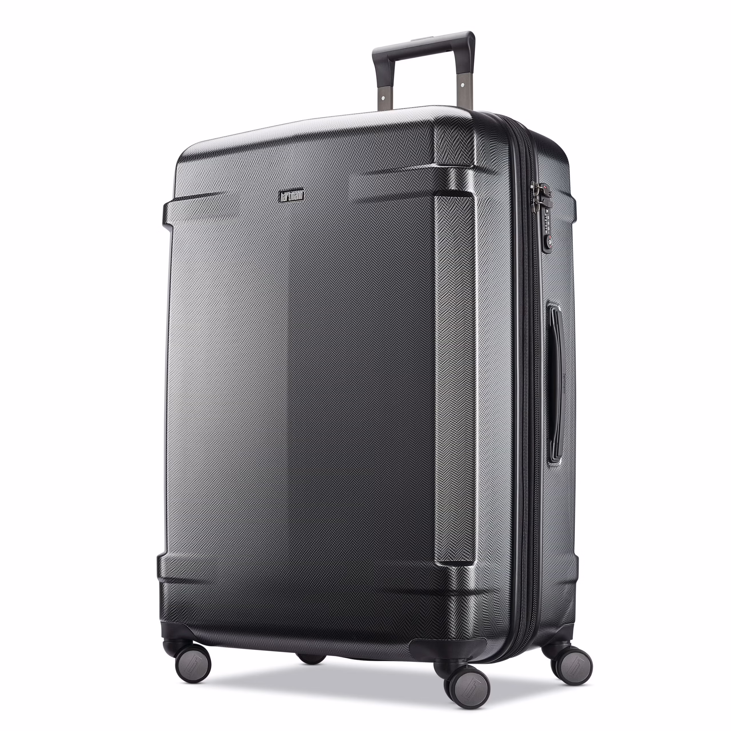 - Exterior: Durable 100% polycarbonate with metallic film and signature Hartmann print in sophisticated colors, recessed TSA lock for added security