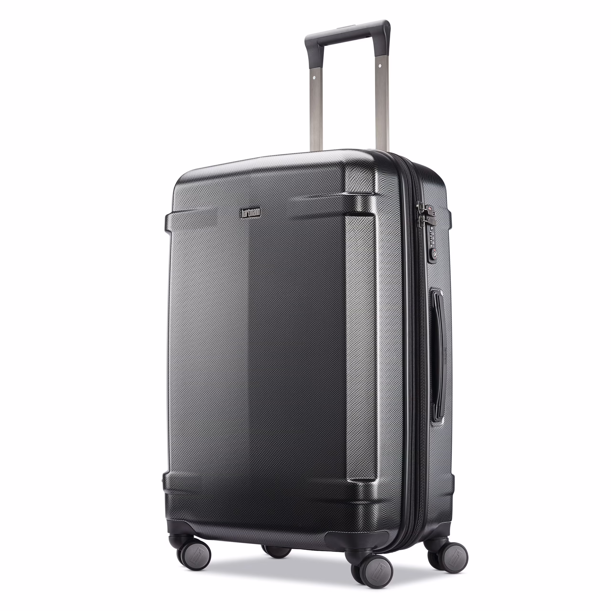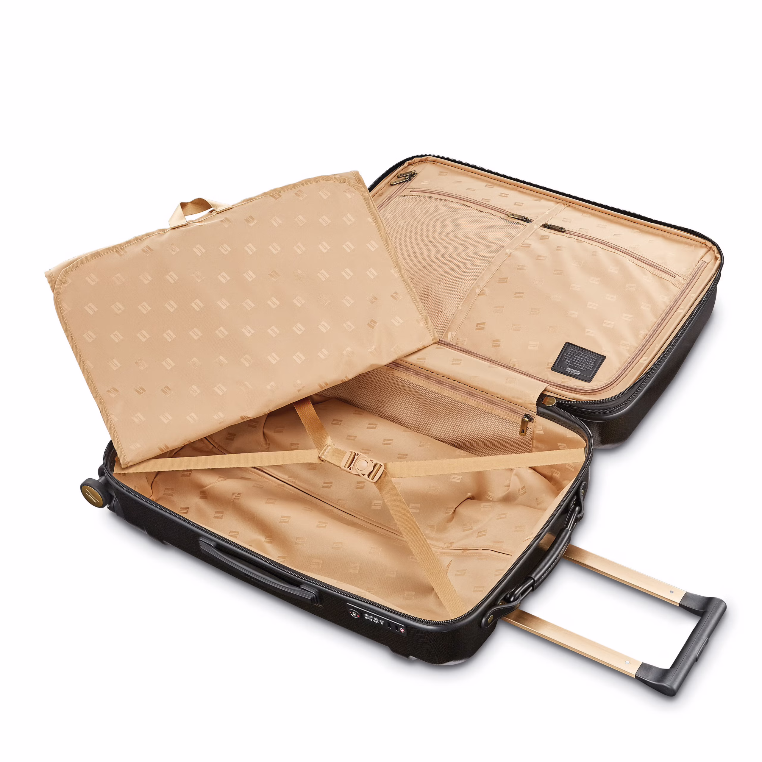 Now departing the status quo. Express your distinctive style on longer journeys with the Hartmann Century Deluxe hardside spinner. Ample interior zippered pockets and a removable garment sleeve keep items neatly organized behind a sophisticated metallic shell