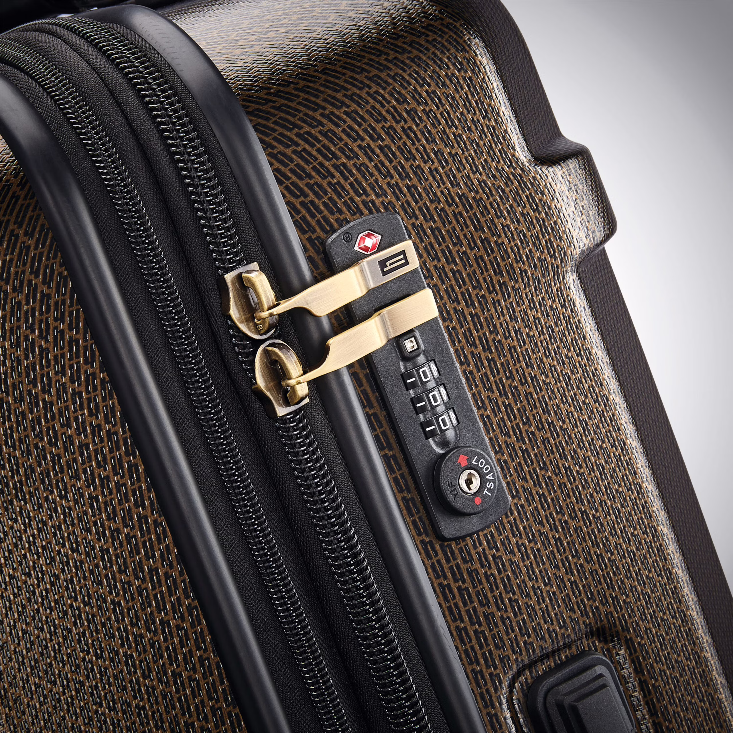 - Exterior: Durable 100% polycarbonate with metallic film and signature Hartmann print in sophisticated colors, recessed TSA lock for added security