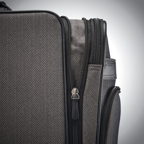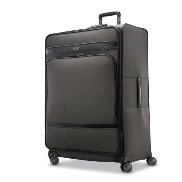For longer itineraries, this expandable spinner fits all of your belongings in distinctive style. Hartmann signature herringbone fabric and interior Ducord™ striped accents lend a bespoke look, while a padded tri-fold suiter, cross straps, and zippered pockets ensure packing organization.