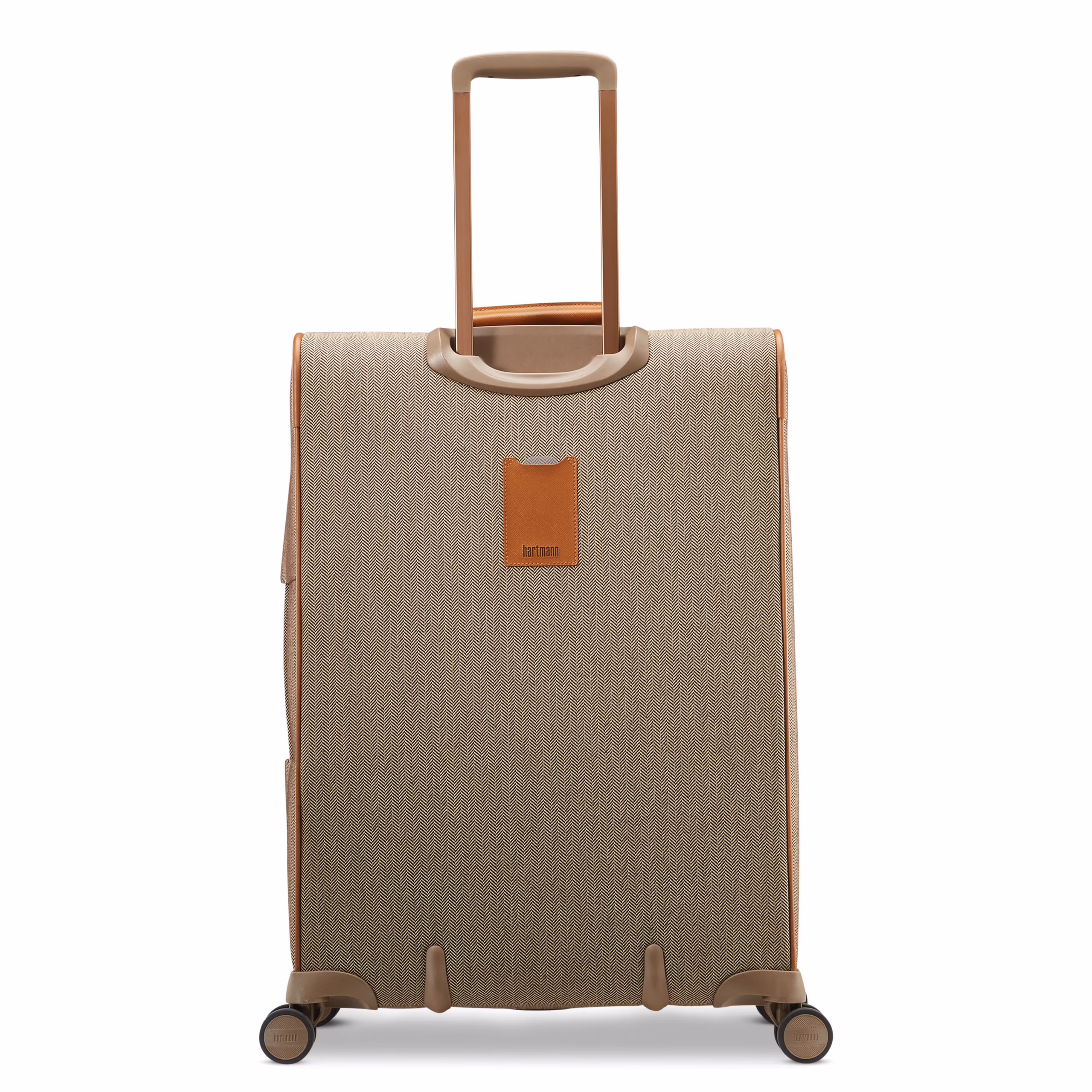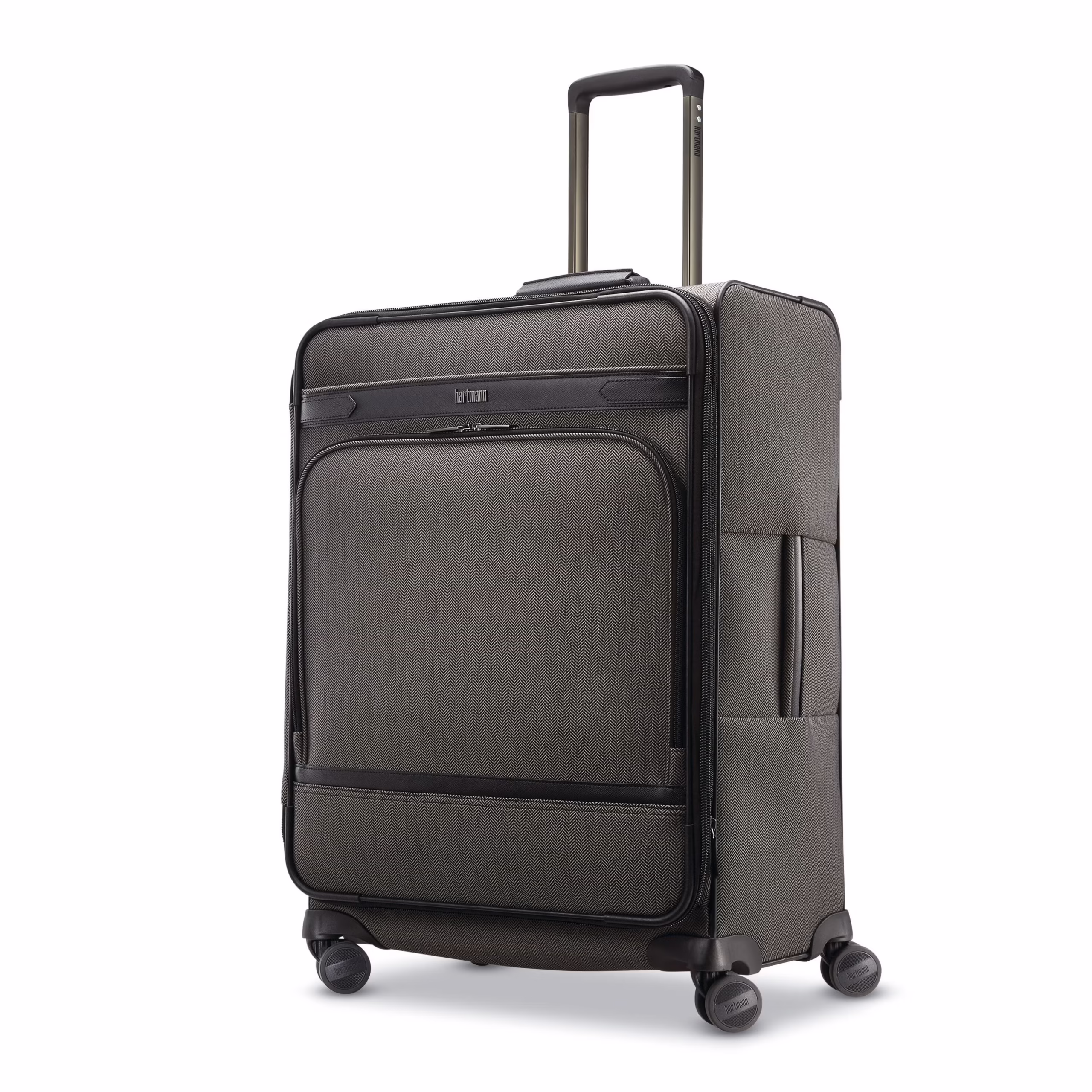 For longer itineraries, this expandable spinner fits all of your belongings in distinctive style. Hartmann signature herringbone fabric and interior Ducord™ striped accents lend a bespoke look, while a padded tri-fold suiter, cross straps, and zippered pockets ensure packing organization.