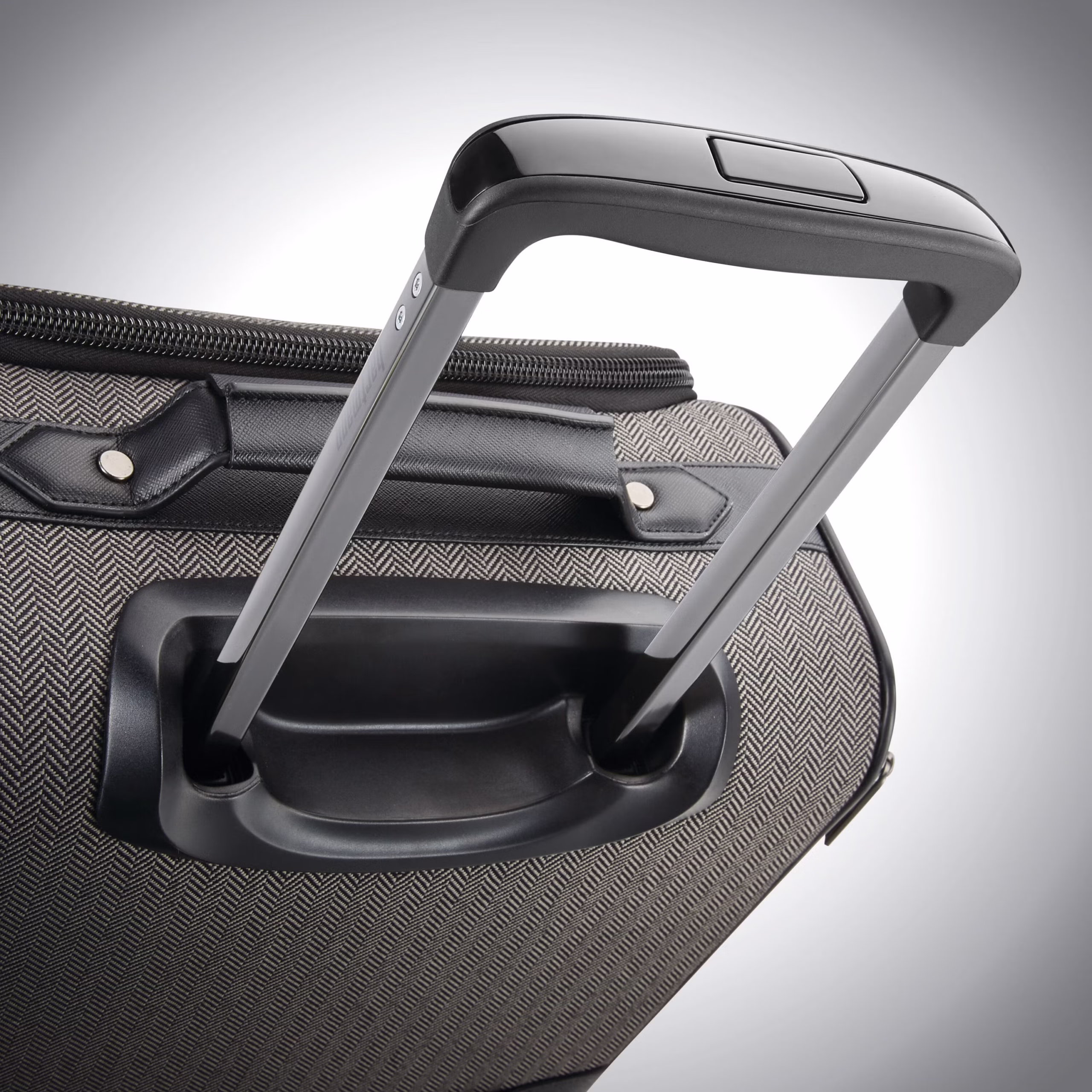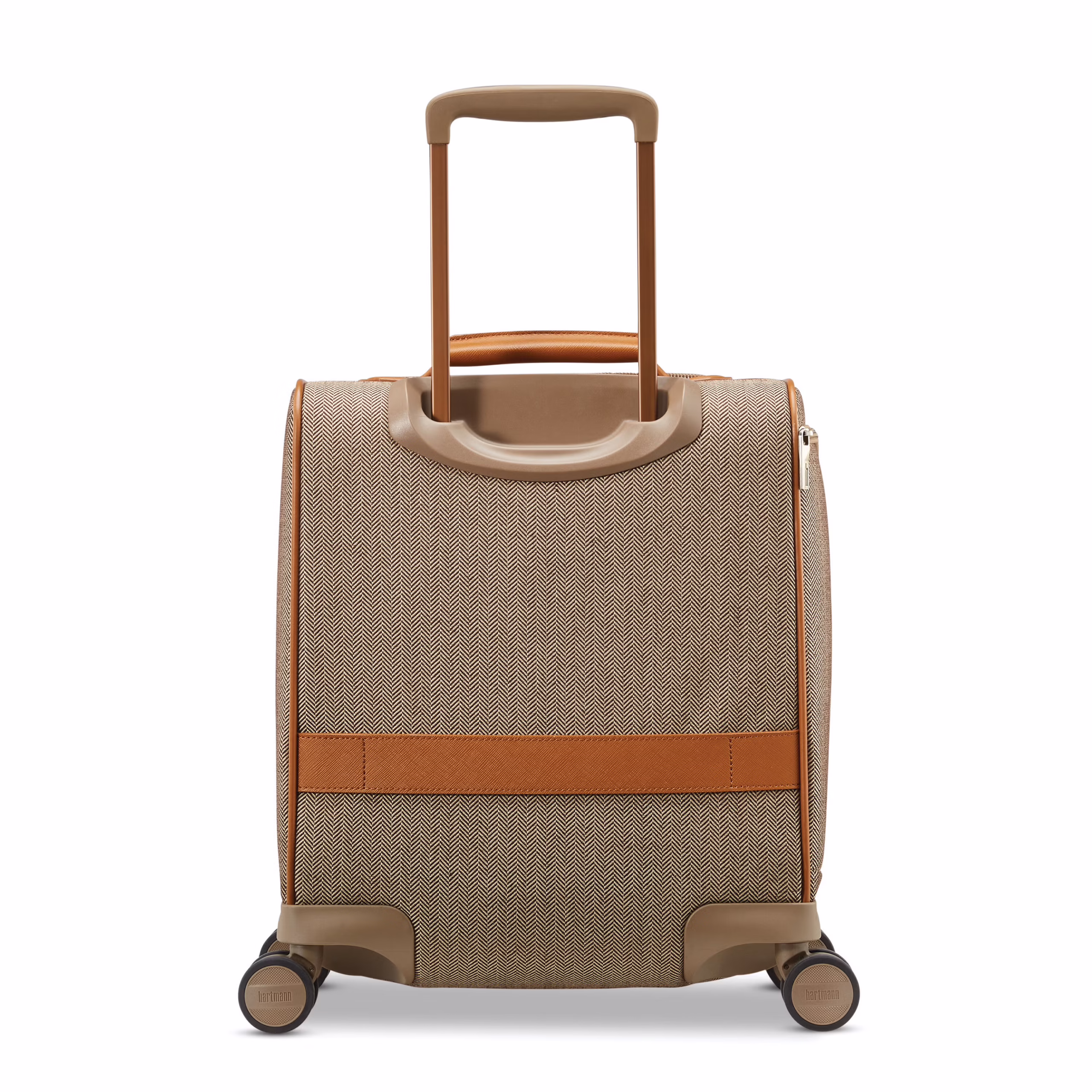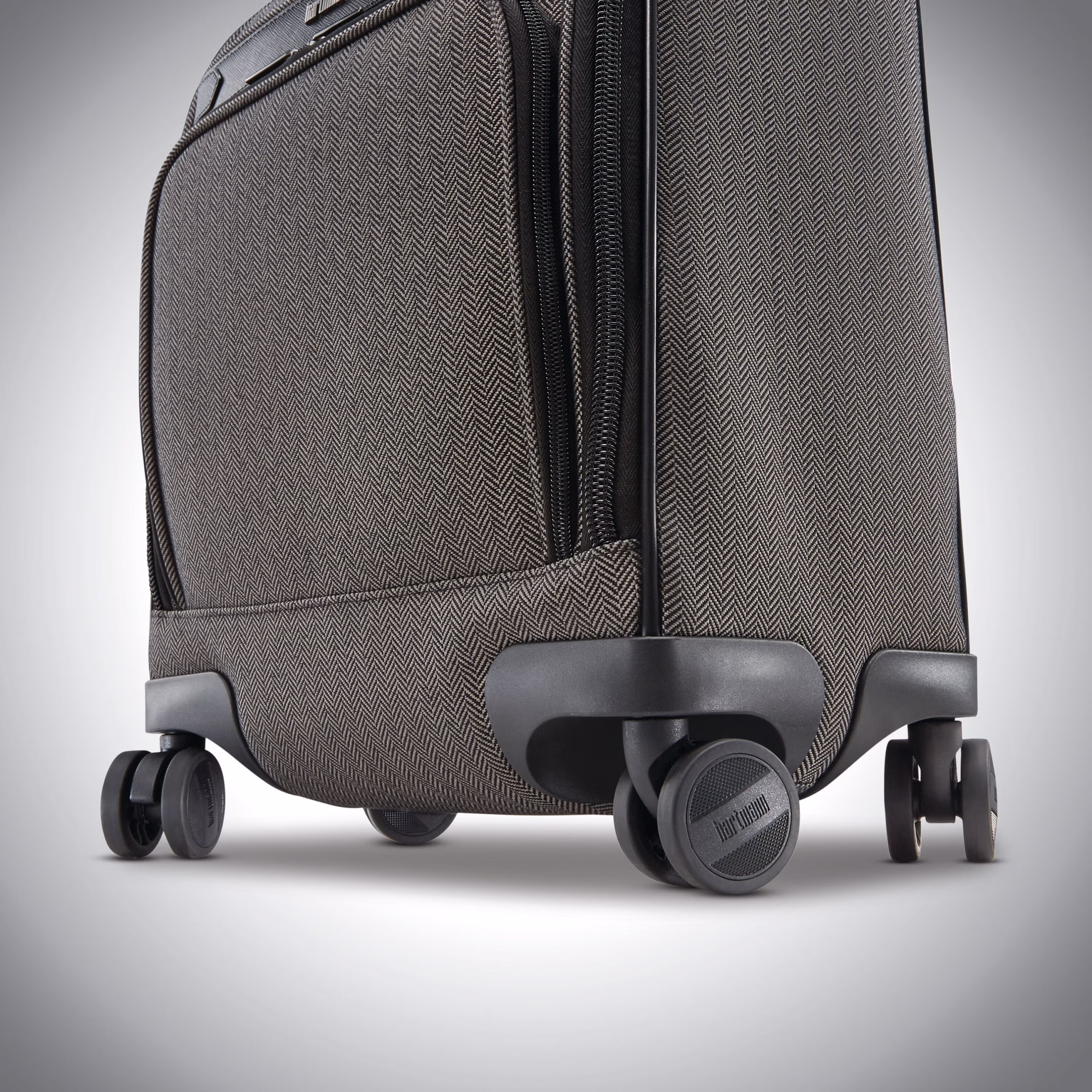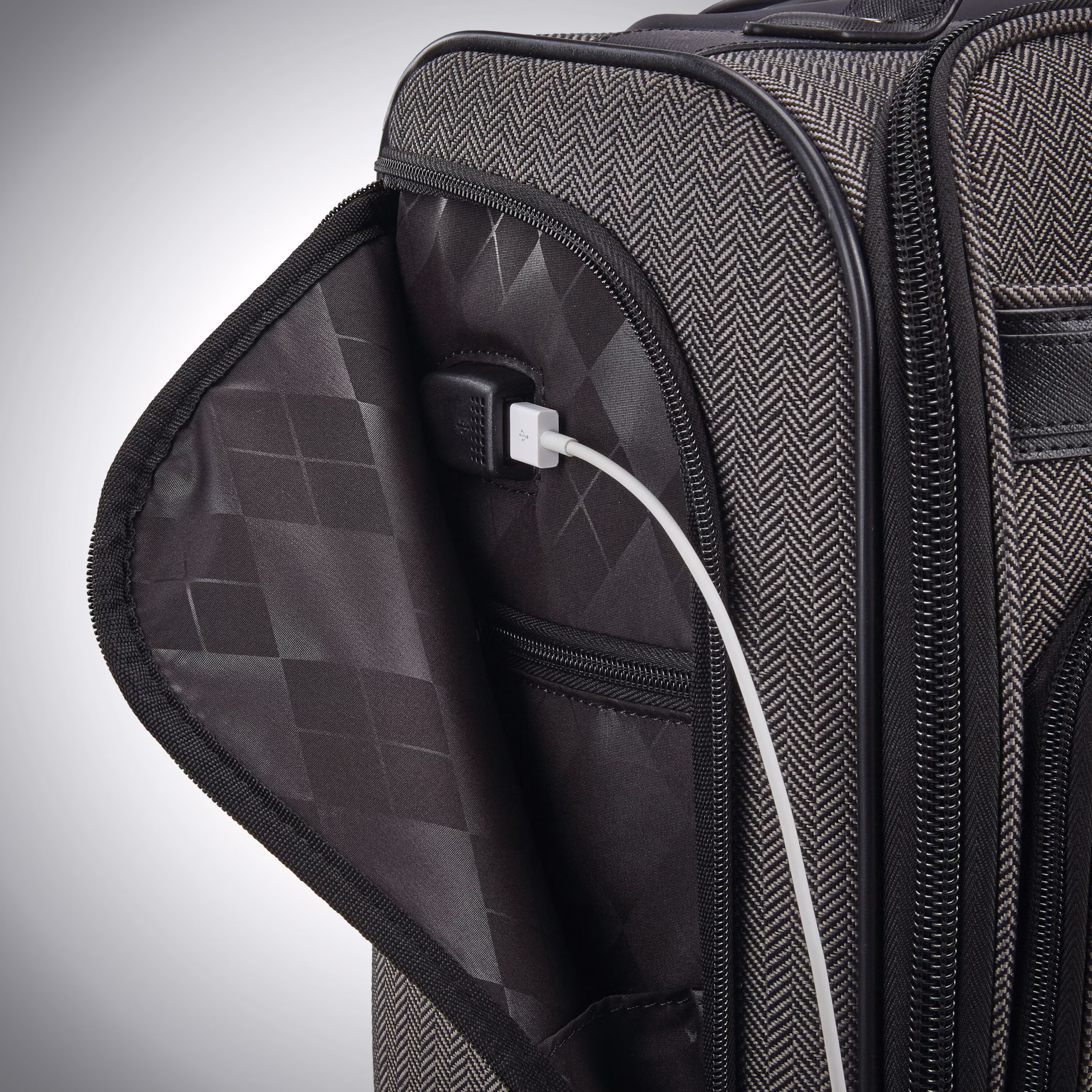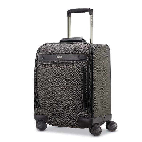 Keep distinctive style and essential belongings within reach with this suitcase sized to fit under most airline seats. Charge your devices with the USB port, slip your laptop into the padded sleeve, and always look refined with Hartmann signature herringbone fabric.