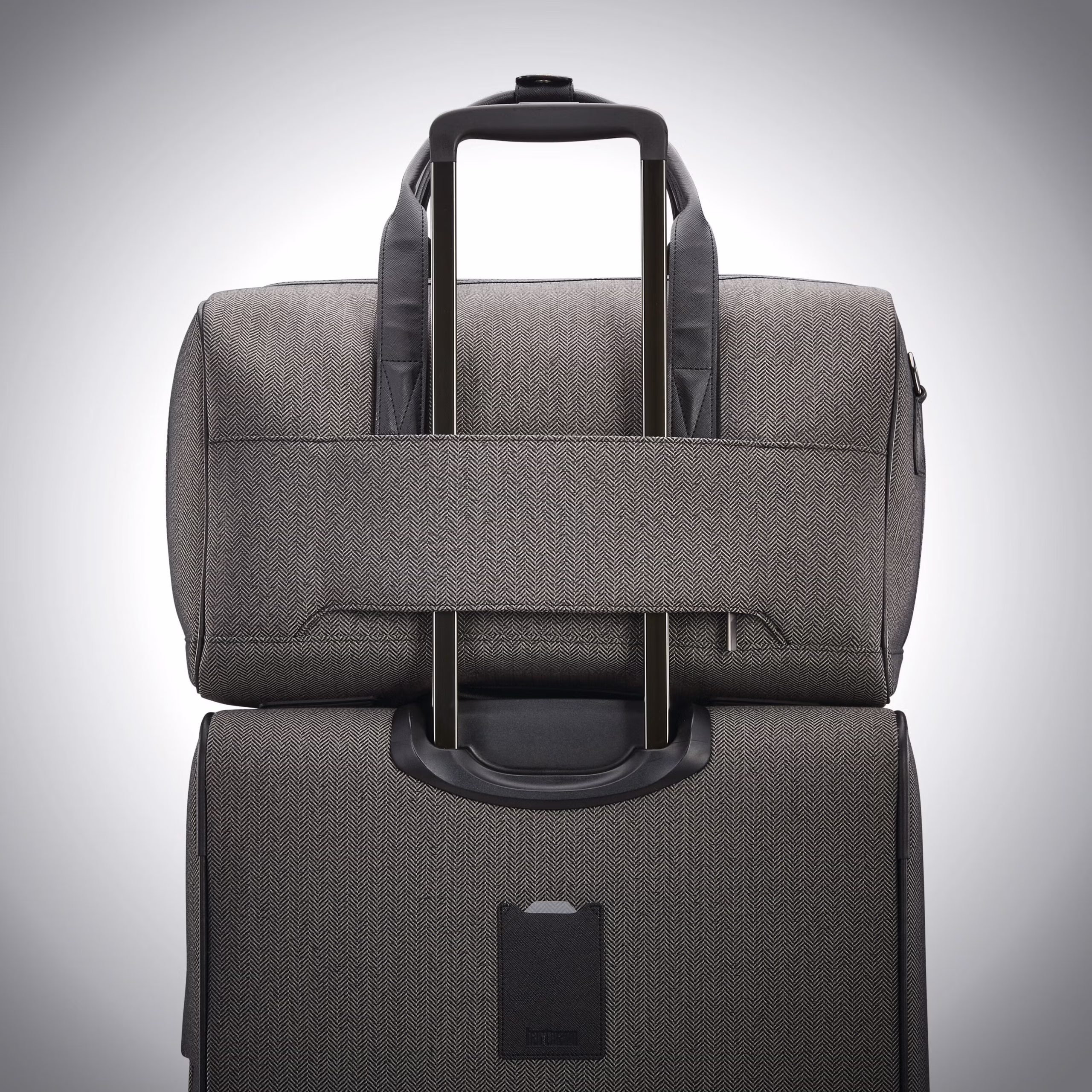 Steal away for a weekend in style with this tailored, mid-sized bag. Hartmann signature herringbone fabric and interior Ducord™ striped accents set a distinctive look, while padded handles and strap ensure carrying comfort. Or travel hands-free by slipping the SmartSleeve™ over your spinner handle.