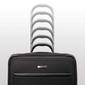 - Retractable Handle – Provides easy maneuverability when extended out from the suitcase, and stores neatly inside when not in use. Locks in place in both the fully extended and stored positions for secure traveling.