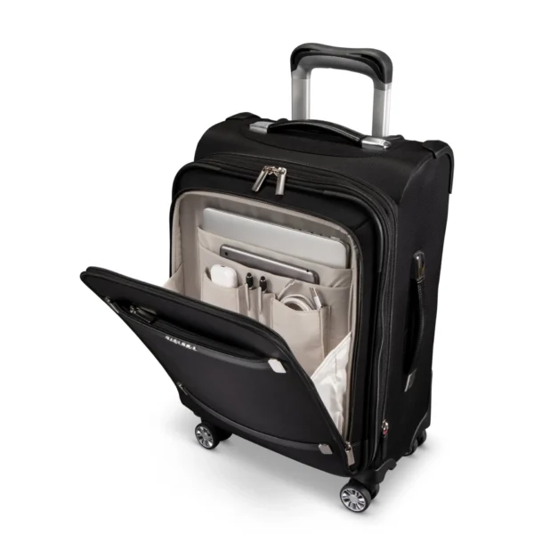 This attractive carry-on is sized for travelers who prefer flying on larger planes and like a little extra packing room. It is also tech-charging capable, so you’re always powered up. Designed for modern explorers with a taste for refined craftsmanship, this exceptional suitcase also offers smooth, ergonomic handling, a well-organized interior – perfect for business, pleasure, and compliments on your good taste.