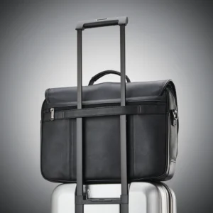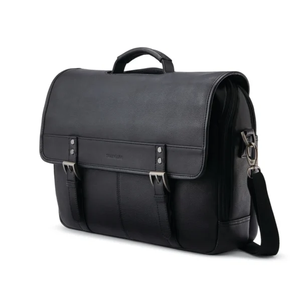 - Classic double buckle business satchel; fits up to 2 laptops up to 15.6″
