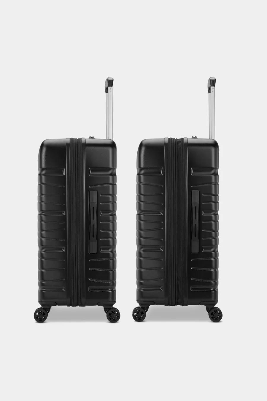 Modern organic pattern aesthetic in an overall boxy construction design to maximize every inch of the case for extreme packing capacity. Industrial graded metal handle system tubes with ergonomic carry grip for enriched confidence and user experience. Refined twill-alike texture with a superior metallic finish. APCRB shell material for maximum strength in quality, weight, performance and fatigue resistance.