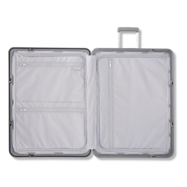 Step out with a sophisticated design, modern functionality, and lightweight zipper-less constructed case, your Framelock Max unlocks the unconventional luggage the industry is accustomed to seeing. Innovative and durable frame construction offers a highly secure Eazylock™ mechanism, simply controlled by one centralized slide puller, for locking and unlocking. The RightHeight™ handle system is accompanied by a TPR handle grip, 360° spinner wheels, two interior zipper dividers made with Recyclex®, the Framelock Max collection is your ultimate travel partner maximizing your packing capacity and security.