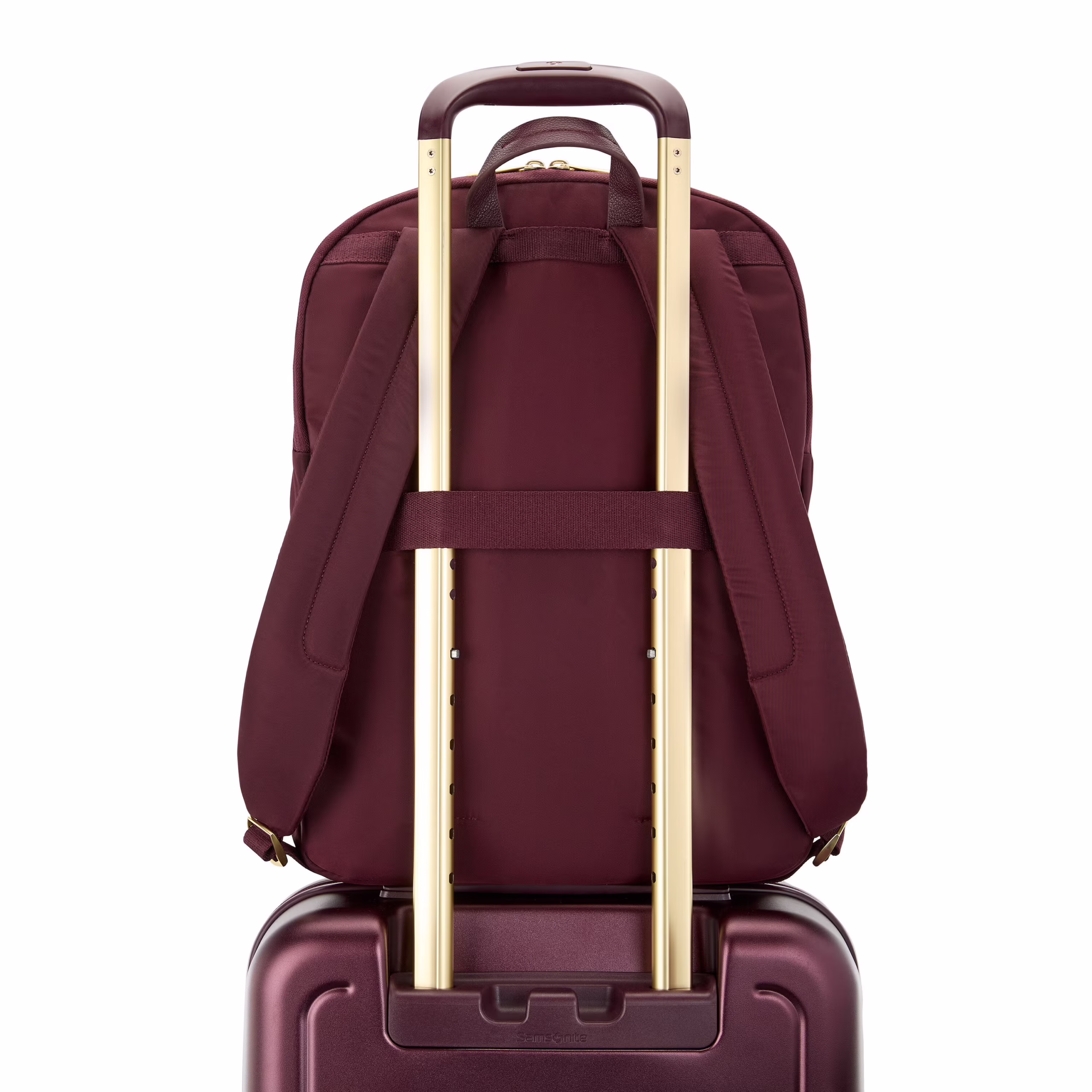 - StackIt™ Strap fits over most upright luggage handles
