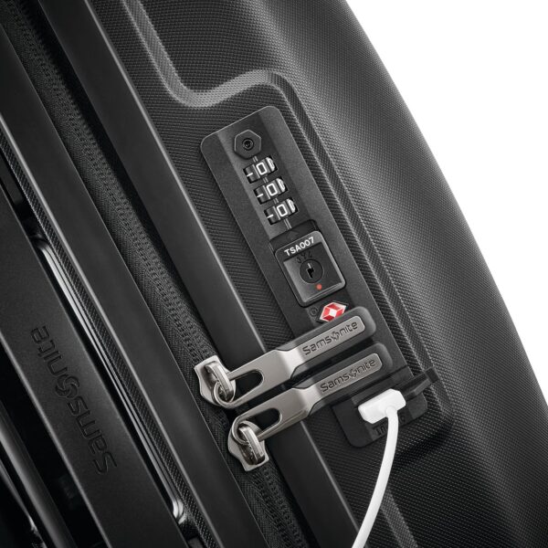 - Built-in TSA lock with an integrated USB port (carry-on sizes only) and internal battery pocket