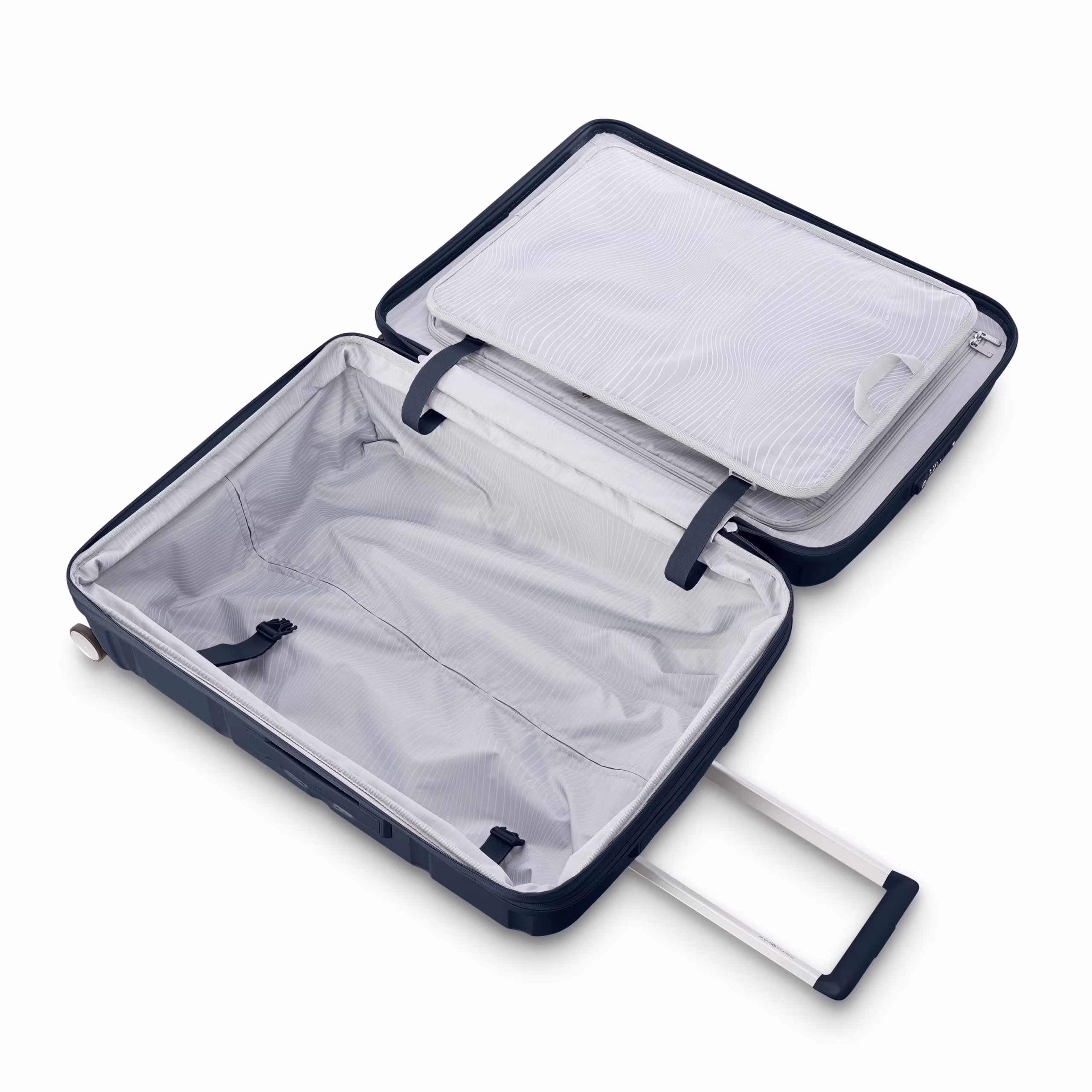 Our instantly-iconic Outline Pro polypropylene collection takes you confidently in the direction of your destination thanks to its elevated design and eye-catching color options. This smart and sleek Medium Spinner is all systems go – while pulling out all the stops: from its molded trolley handle to easy-lift top and side grips, major touchpoints are treated with Sam-AMH™ technology to help keep hands clean. With integrated extras like a built-in TSA lock as well as superb-adaptable interior lined in our eco-conscious Recyclex® fabric, this all-time travel essential bridges form and function flawlessly. Say it to yourself: You’ve earned this upgrade.