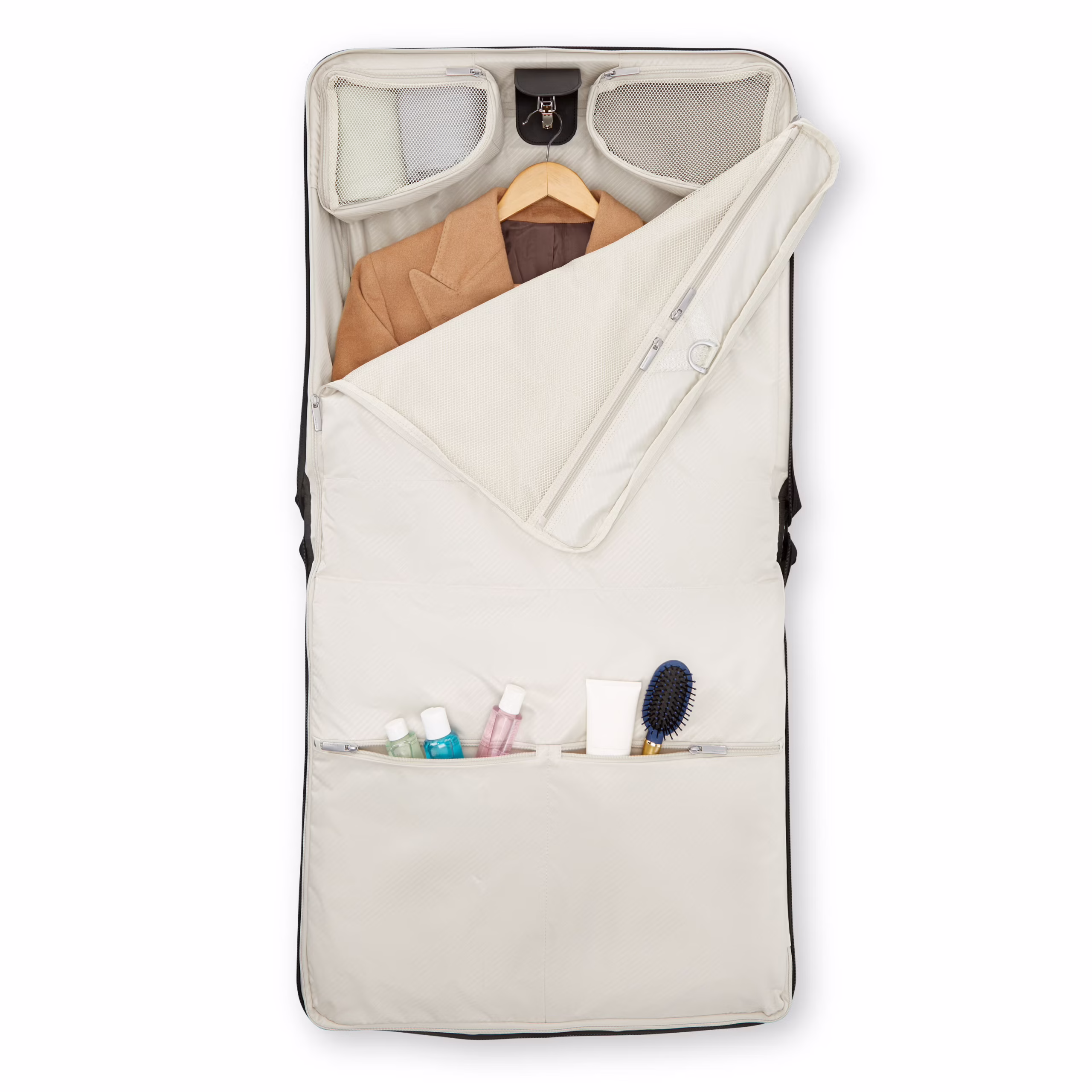 Tried and trusted since 1958, the Silhouette collection is a timeless classic rooted in our legacy. We’ve updated the time-honored sleek luggage style by combining the distinct elements from our hardside but with the flexibility of a softside. Our spinner garment bag is made from 100% post-consumer recycled PET bottles, specifically engineered to endure rigorous travel. Perfectly proportioned interior pockets to keep your clothes neat and organized and multiple exterior pockets for easy access to travel essentials. A dual hanging bracket for effortless closet-to-bag transitions, and our patented EAZYHOOKTM to carry those last-minute grabs like your handbag.