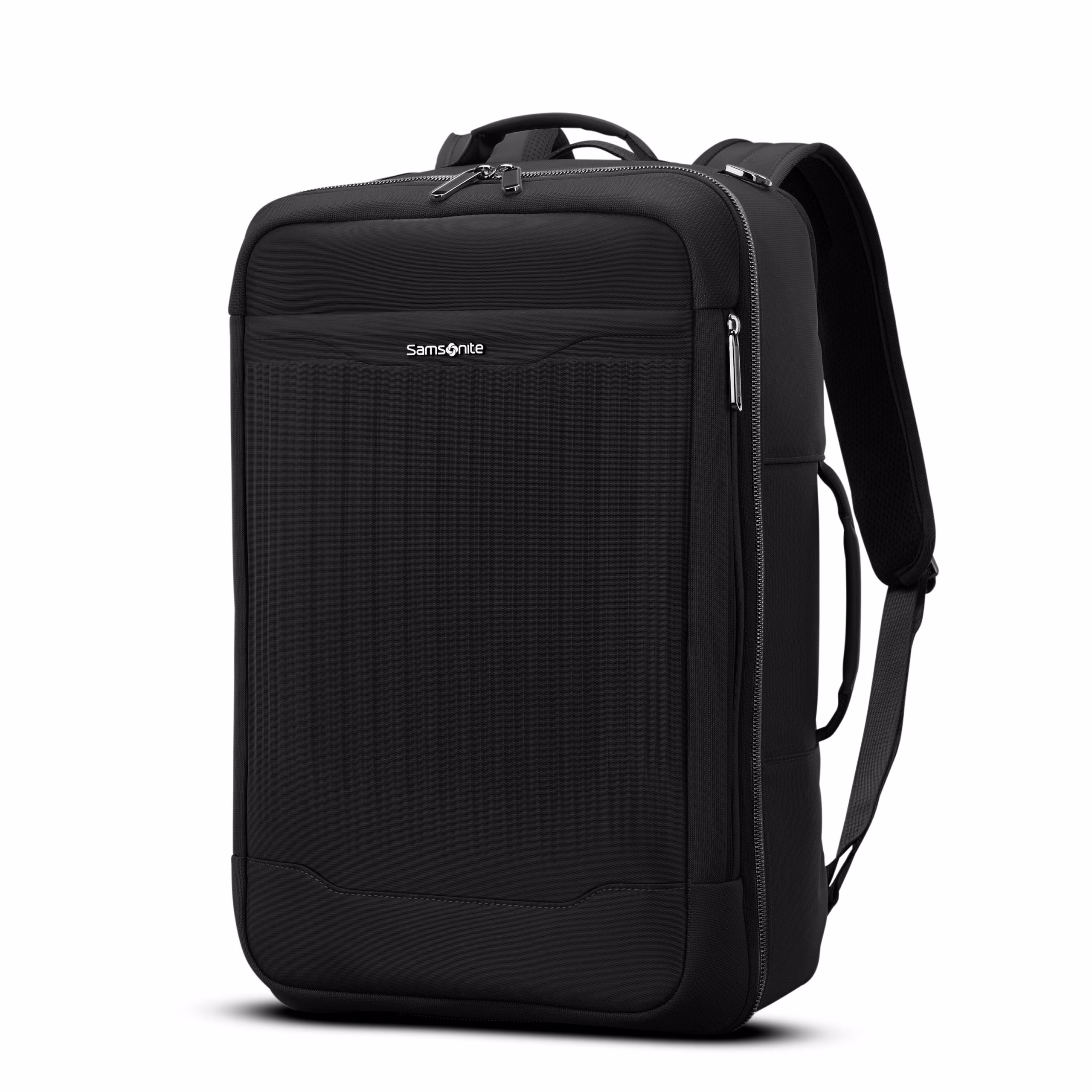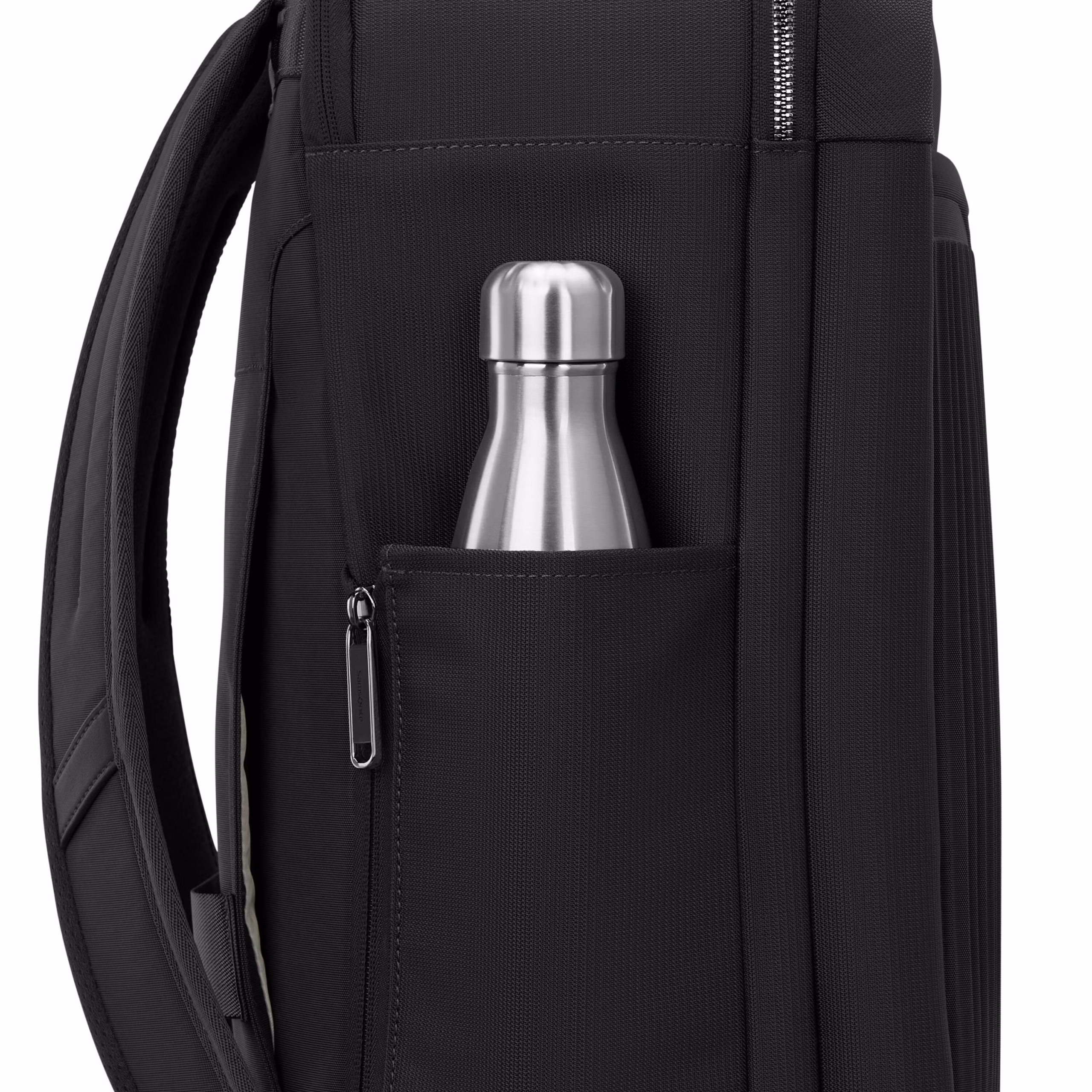 Our Travel Backpack compliments any bag from the time-honored Silhouette Collection. Made from 100% post-consumer recycled PET bottles, it’s specifically engineered to endure rigorous travel and offers all the convenience of a carry-on in a backpack. Inside you’ll be happy to discover plenty of separate compartments and pockets to hold your laptop, tablet, and a weekend’s worth of clothes for those last-minute work trips or getaways. Exterior pockets offer even more organization and an expandable water bottle pocket so you stay hydrated while on the move. StackIt strap to secure on any larger checked luggage and stylish handles when you want to give your back a break.