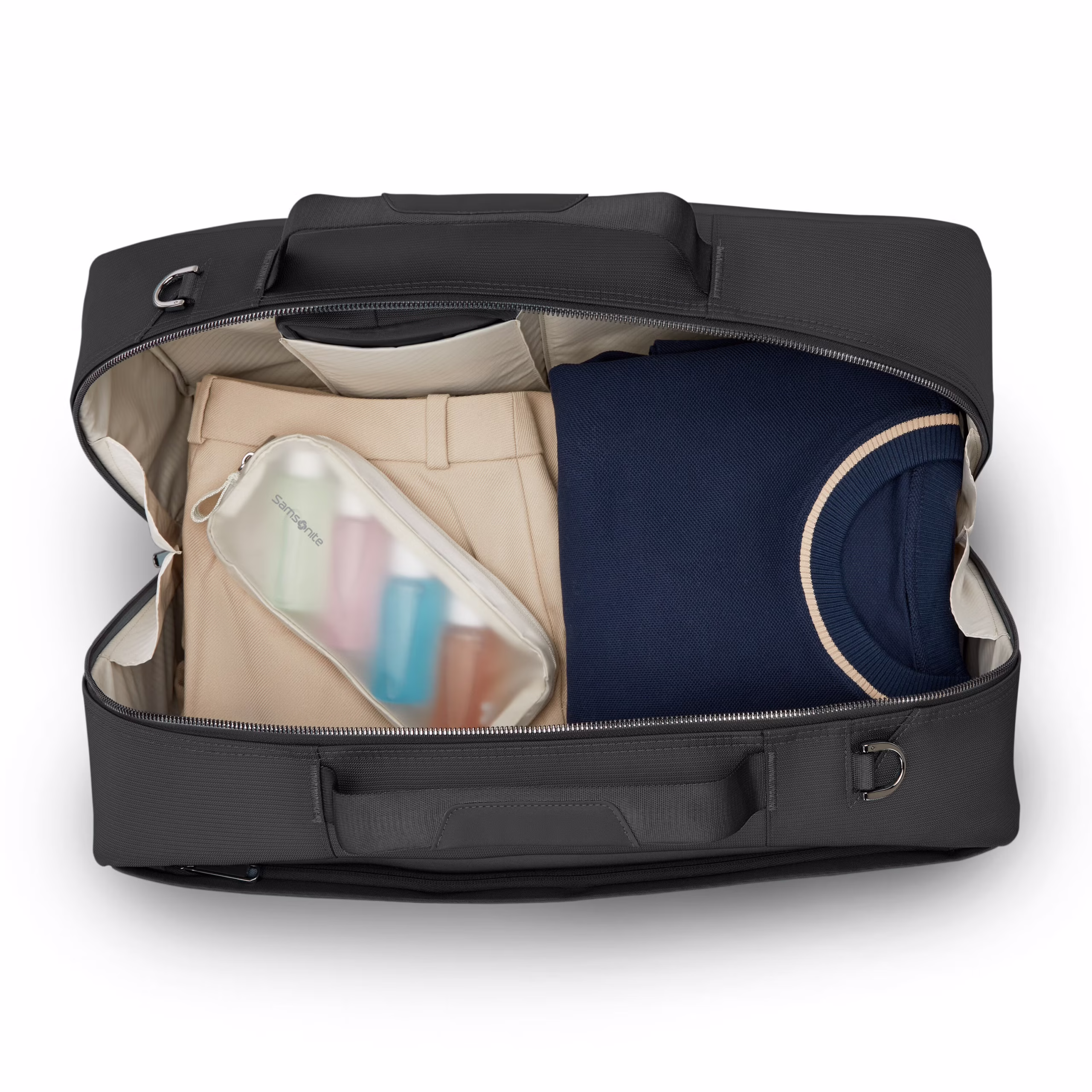 Specially designed to complement any bag from the time-honored Silhouette Collection, our travel duffel has a lot to offer. It features a wide mouth opening for easy packing. Designated pockets for the included shoe bag, 3-1-1 WetPakTM, and TecKit Pouch for next-level organization. Dedicated padded sleeve for your laptop or tablet and a quick access front pocket so you can keep your travel business in order. And to make life on the move easier, we’ve included a Stack-It strap to secure onto any larger checked luggage.
