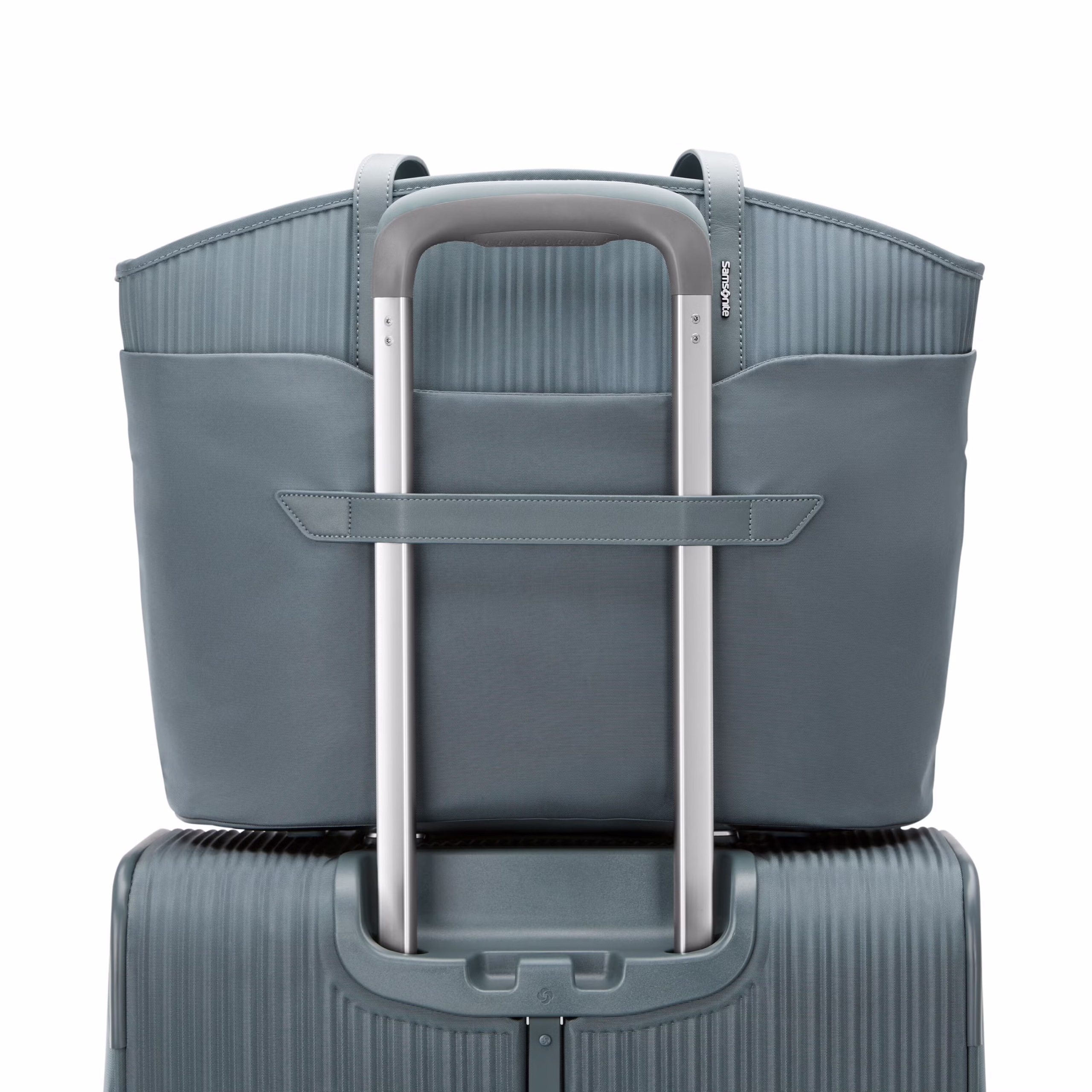 Our CarryAll Tote is designed to complement any bag from the time-honored Silhouette Collection. Made from 100% post-consumer recycled PET bottles, it’s specifically engineered to endure rigorous travel. It offers large front and back slip pockets with zip closures to quickly access essentials like your hotel key or phone. A separate laptop-friendly zippered compartment. And a detachable wristlet that magnetically attaches to the inside of the main compartment. Interior water bottle pockets for on-the-go hydration and the must-have StackIt strap to secure to any larger checked luggage.