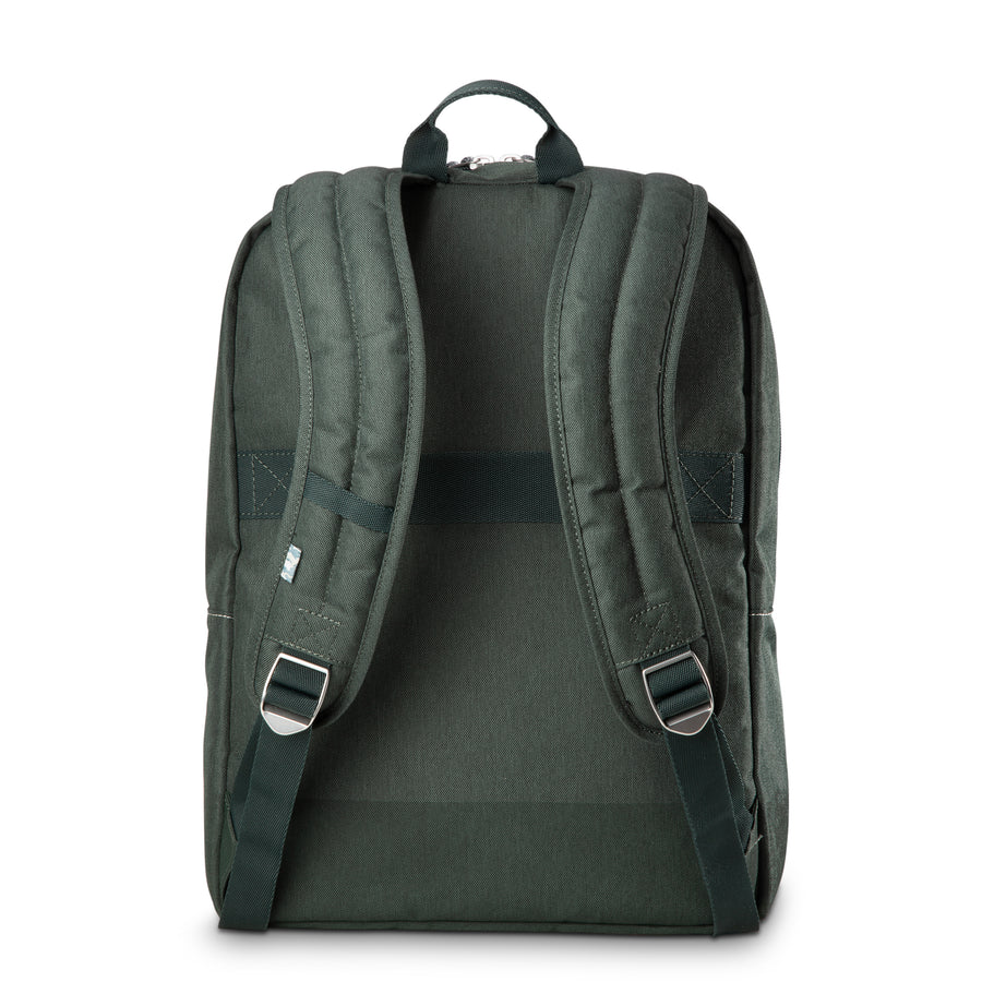 Our no-fuss essential backpack is built with a padded pocket so you can take your laptop wherever you go. Double front pocket allows for additional storage capacity and the adjustable, padded shoulder straps will be easy on your back. The Rainier Simple Backpack is also created from 100% rPET materials.